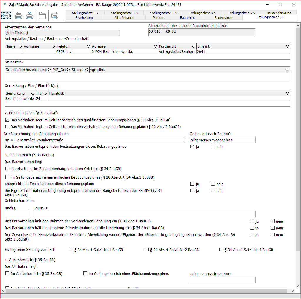 Das Erstellen und Bearbeiten neuer Bebauungspläne erfolgt arbeitsteilig mit externen Planungsbüros. Dazu befindet sich im Sachgebiet ein PC mit zusätzlicher Konstruktionsfunktionalität (MicroStation), die nahtlos in die GajaMatrix-Lösung Bebauungspläne integriert ist. Arbeitsergebnisse vom externen Planungsbüro werden per XPlanGML-Schnittstelle nach GajaMatrix übernommen.