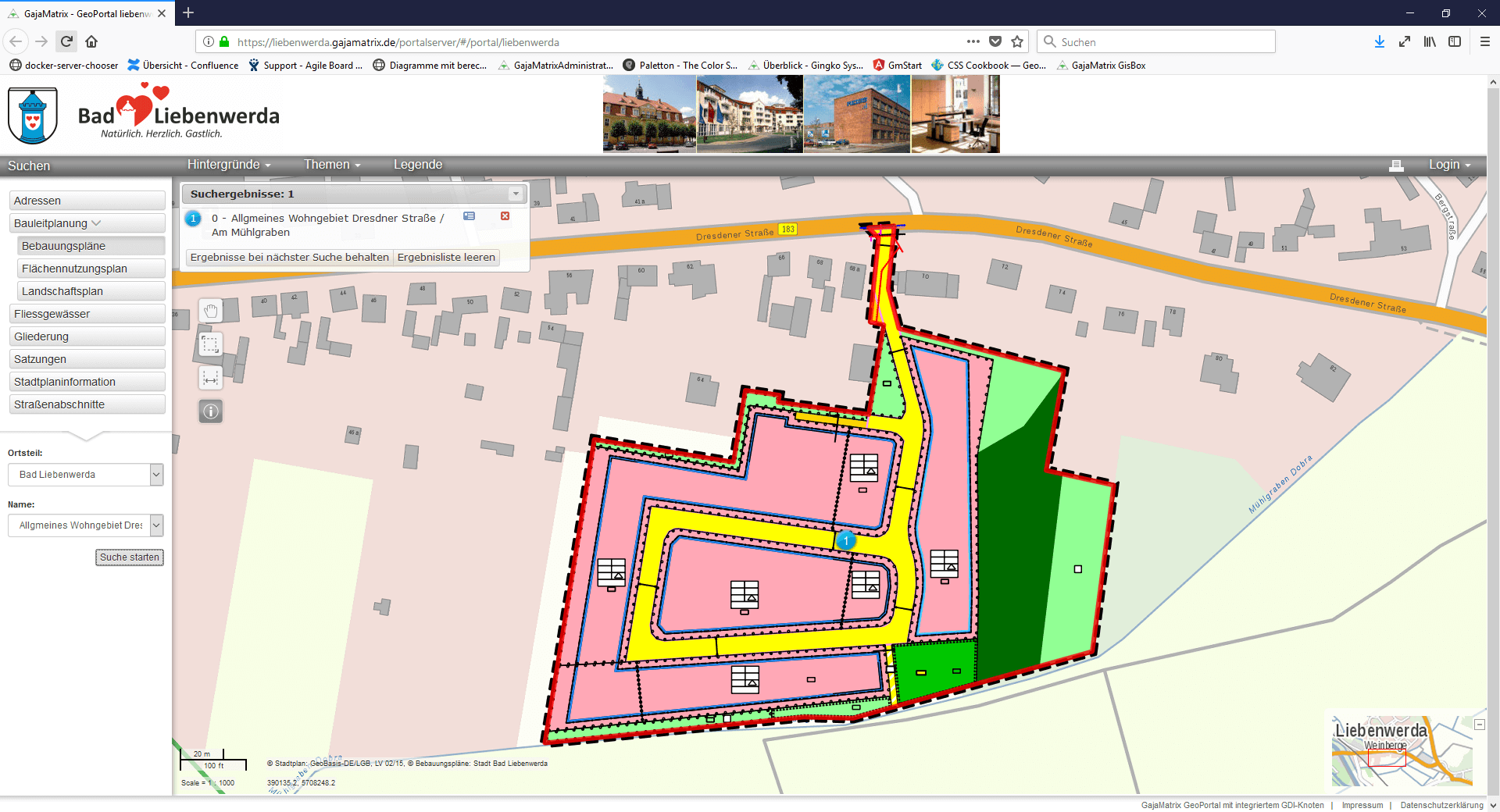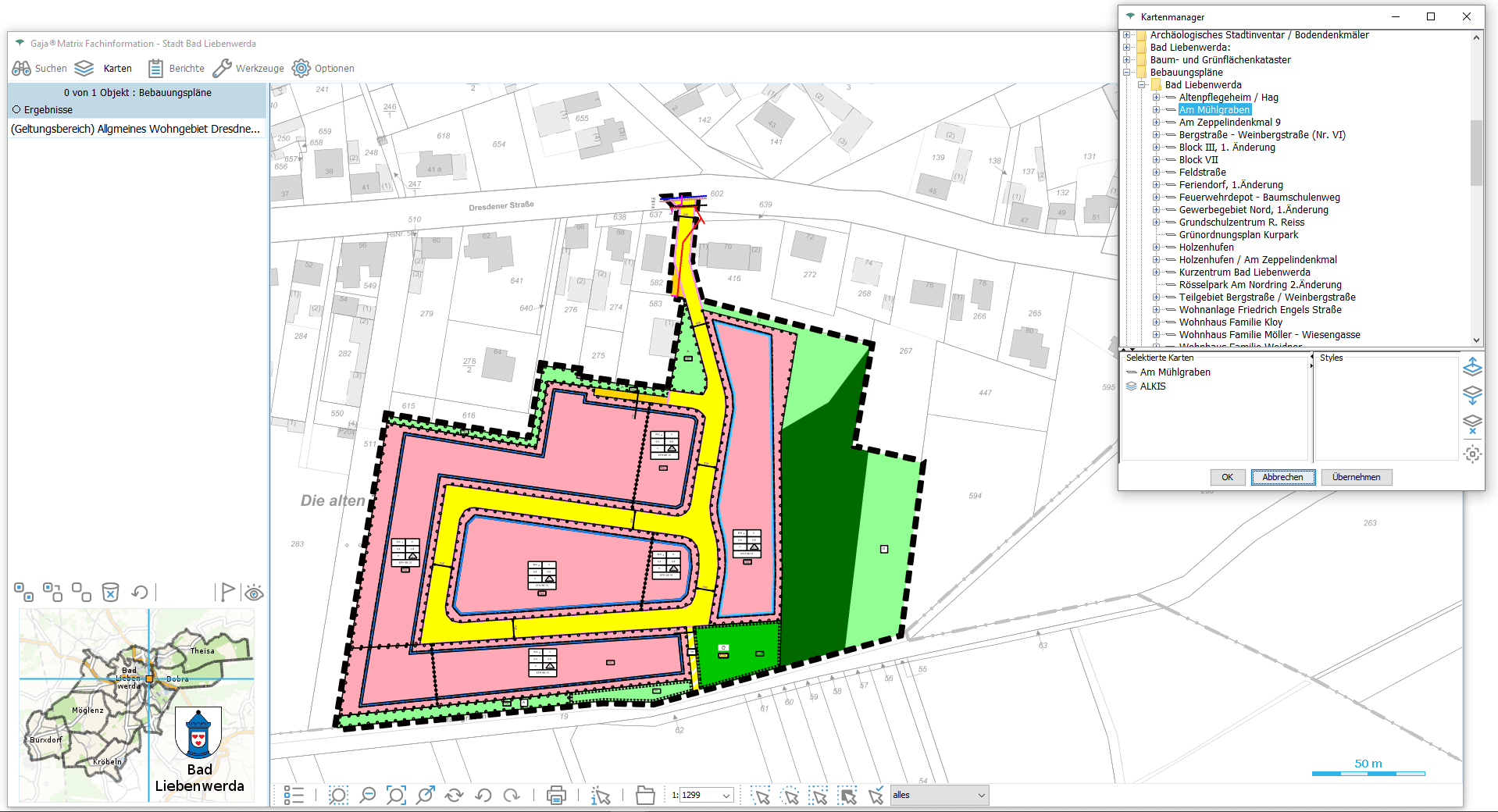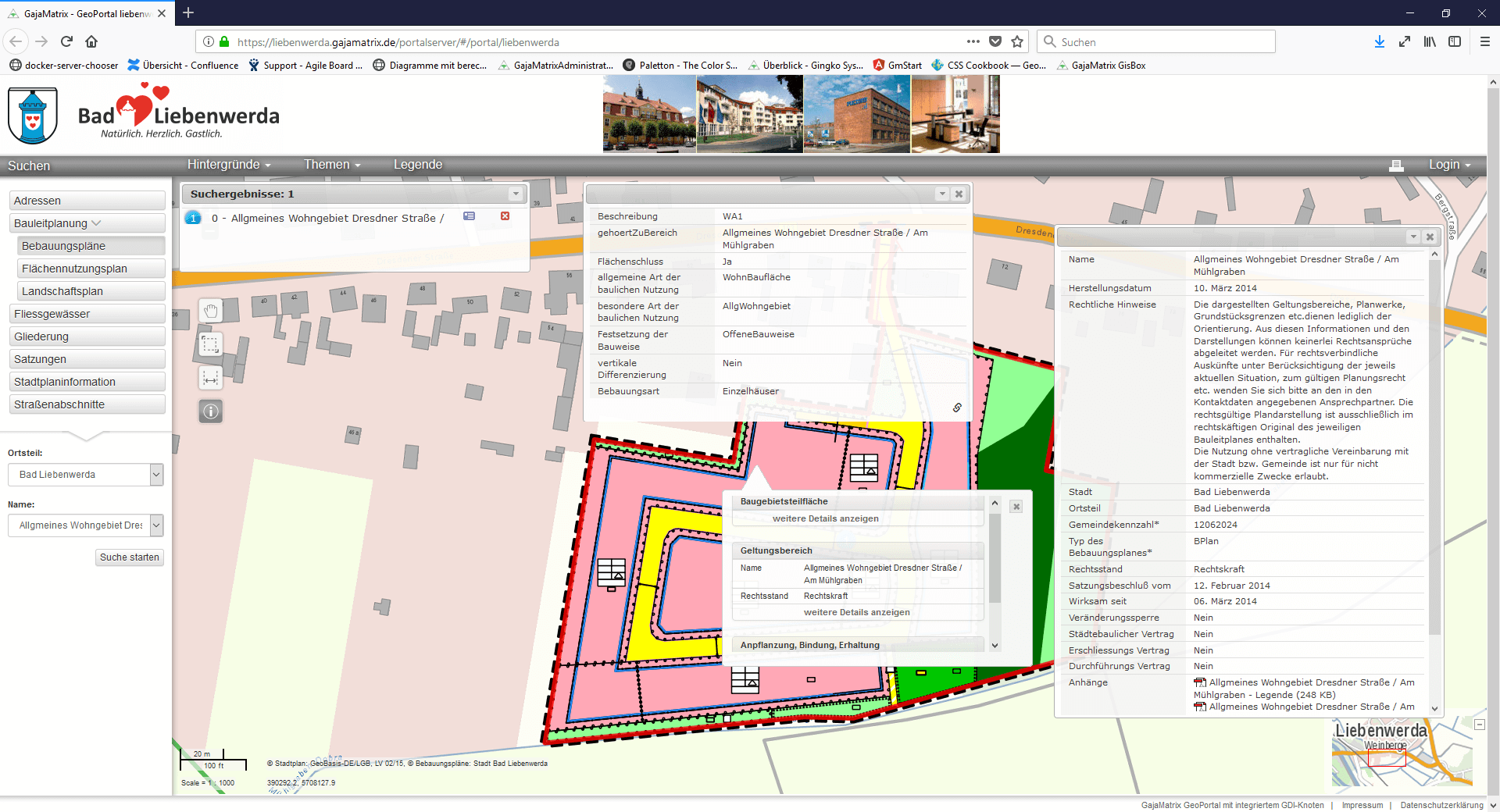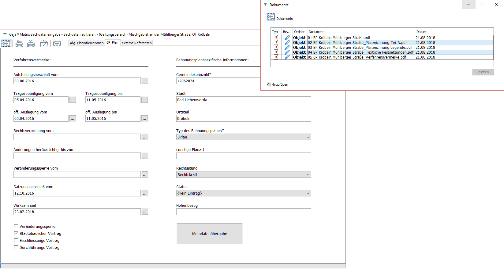 - 84 Stadtplanobjekte mit Suchkriterien, Metadaten und Begleitdokumenten