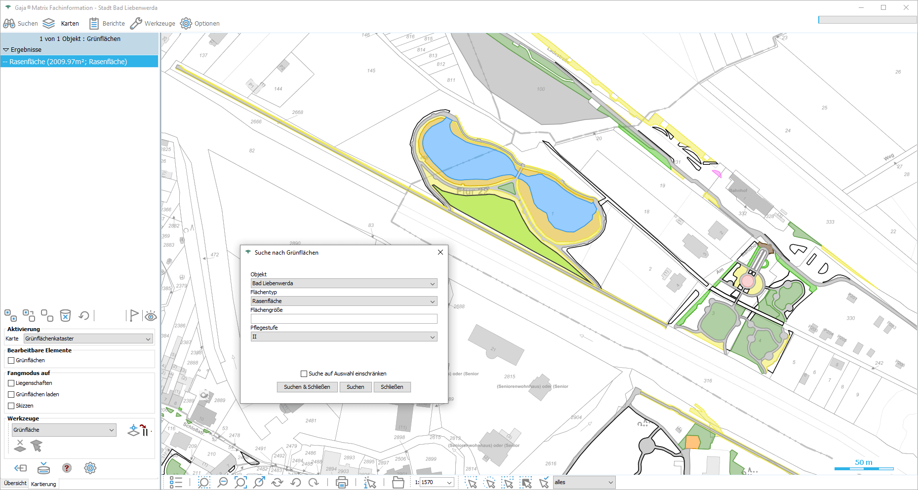 Individuelle Anpassungen von Suchen, Reports, Styles sowie Erweiterungen der Datenmodelle im Hinblick auf grafische Fachbedeutungen und die zugehörigen Datenbankstrukturen der Fachdaten können mit dem „Manager für Datenmodelle“ von speziell geschulten Bedienern in eigener Regie vorgenommen werden.