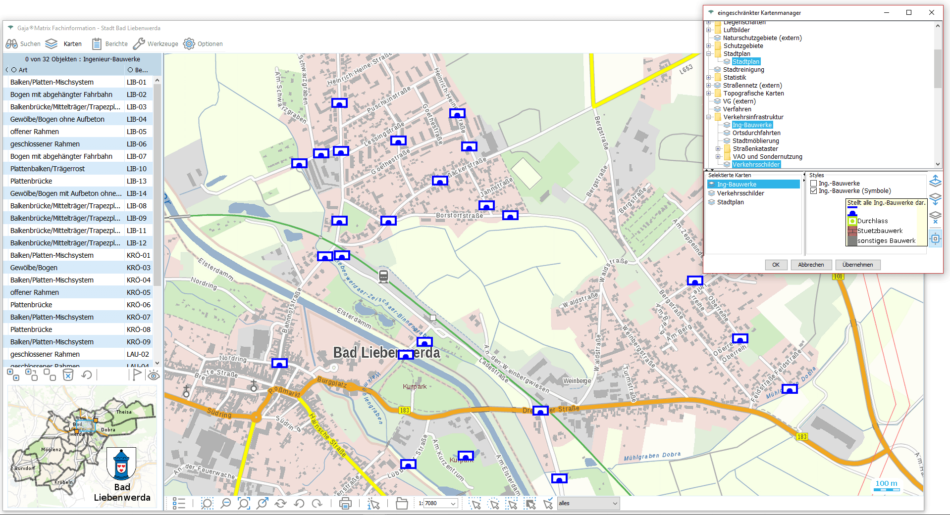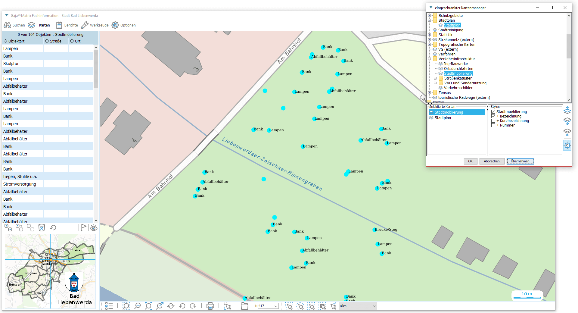 - Mehr als 300 Fachkartenlayer quer über alle Themenbereiche in einer individuell aufgebauten Ordnerstruktur