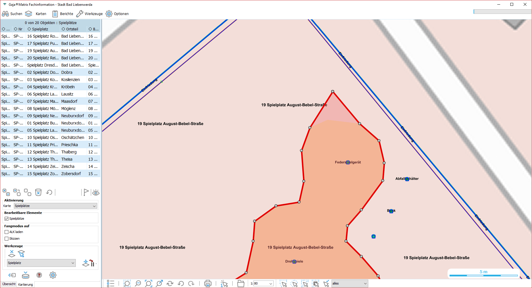 Jeder Nutzer kann freigegebene Informationen aus Lösungen anderer Sachgebiete durch Nutzung vorgefertigter Datenbankabfragen abrufen. Hier: Anfrage an das Spielplatzkataster.