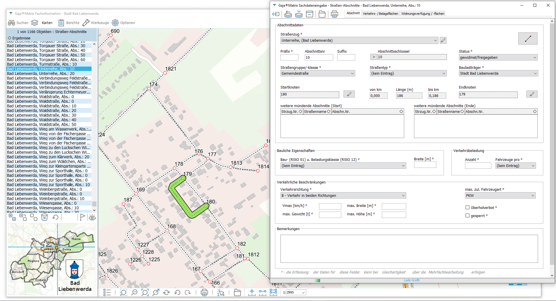 In eigener Regie wurden die Blockseiten der Quartiere kartiert. Die daraus hierarchisch im Datenmodell abgeleiteten grafischen Baublöcke sind mit dem in der Verwaltung vorhandenen Drittprogramm MESO (Einwohnermeldewesen) verbunden.