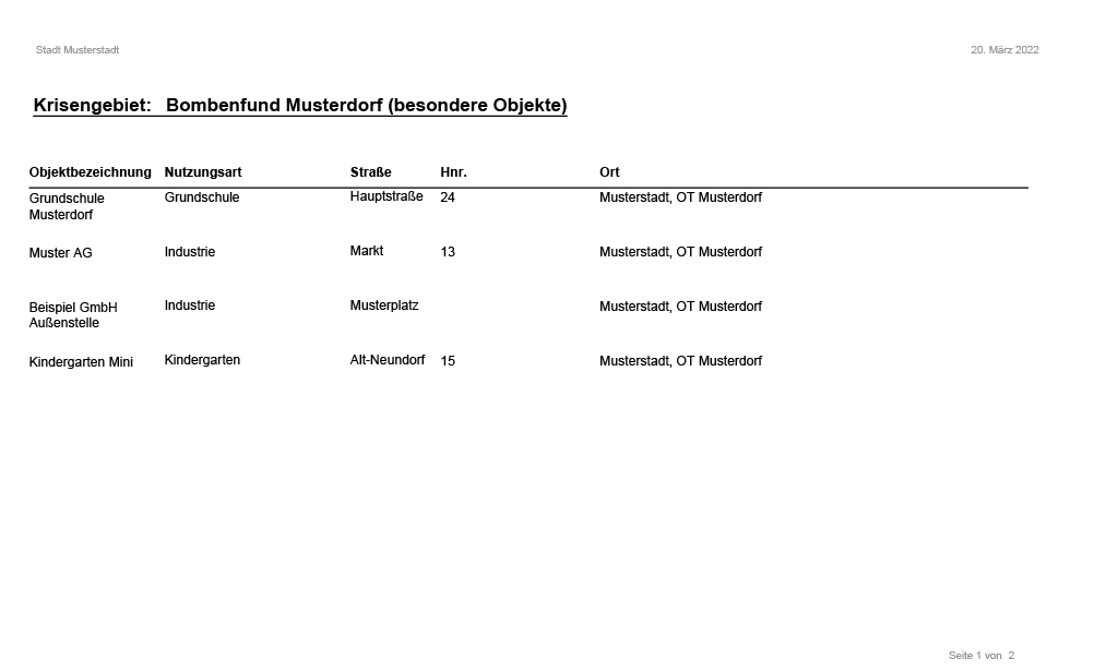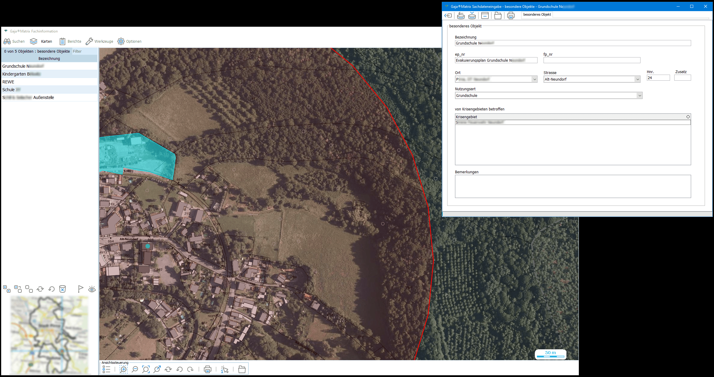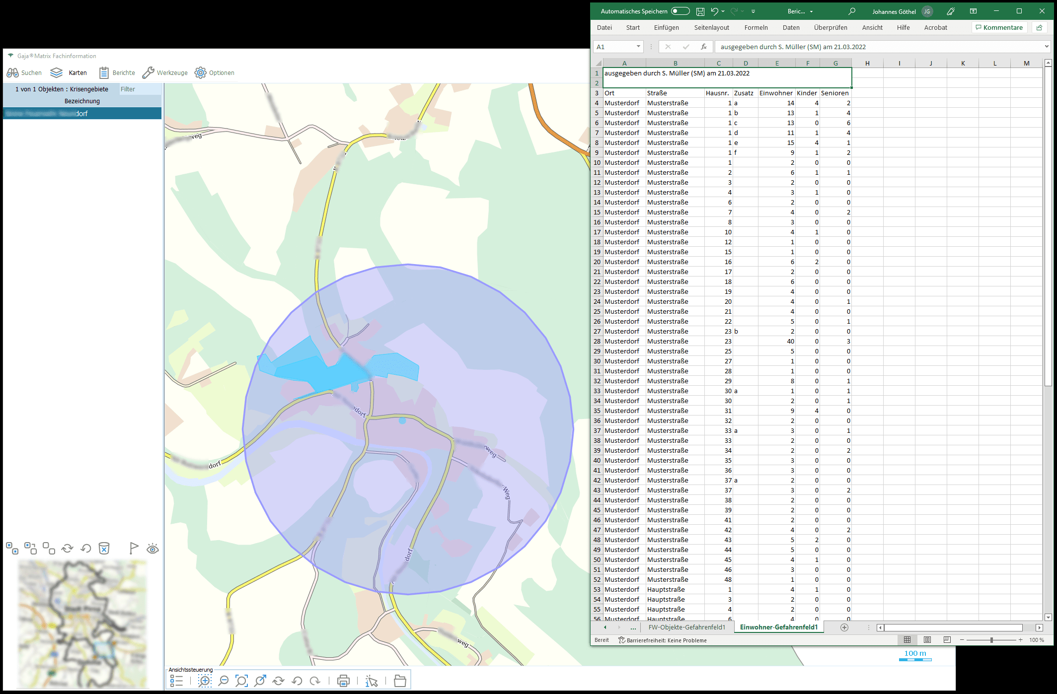 Krisenregion aufspannen (hier: Punkt + Radius 500 m) + automatische Analyse