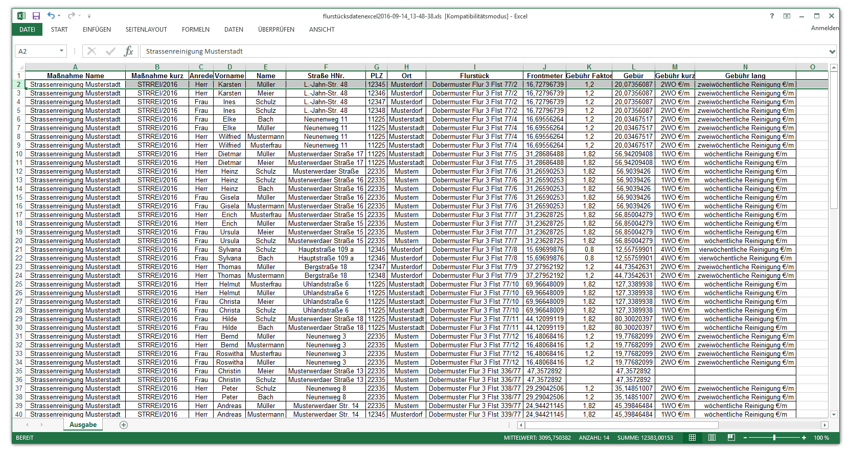 z.B. Excel-Ausgabe zur externen Verarbeitung